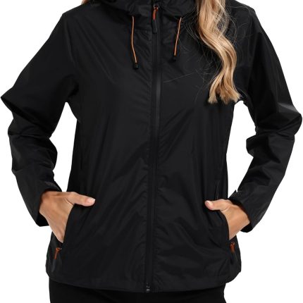 Women’s Rain Jacket Lightweight Waterproof Rain Coat with Hooded Windproof Adjustable Windbreaker
