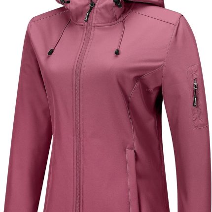 Women’s Softshell Jacket with Hood Fleece Lined Warm Lightweight Waterproof Insulated Windbreaker